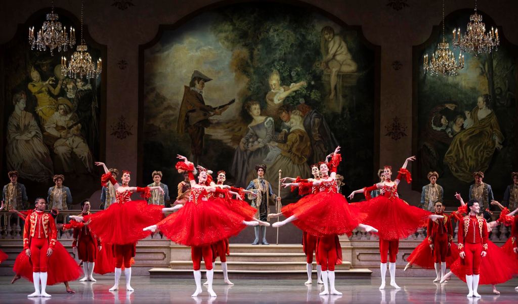 Kent Stowell’s 1994 remake for Pacific Northwest Ballet, which runs through February 8 at McCall Hall, leans into the story’s dreamier and more romantic/Romantic corners while still retaining the fun and freaky elements that make it feel like a fairy tail. The resulting magical romance gives Seattle audiences a chance to dip into an eighteenth-century dream, where we can marvel at designer Martin Pakledinaz’s richly textured costumes, hoot and holler at the company’s technical prowess, and witness the considerable acting chops of its principals.