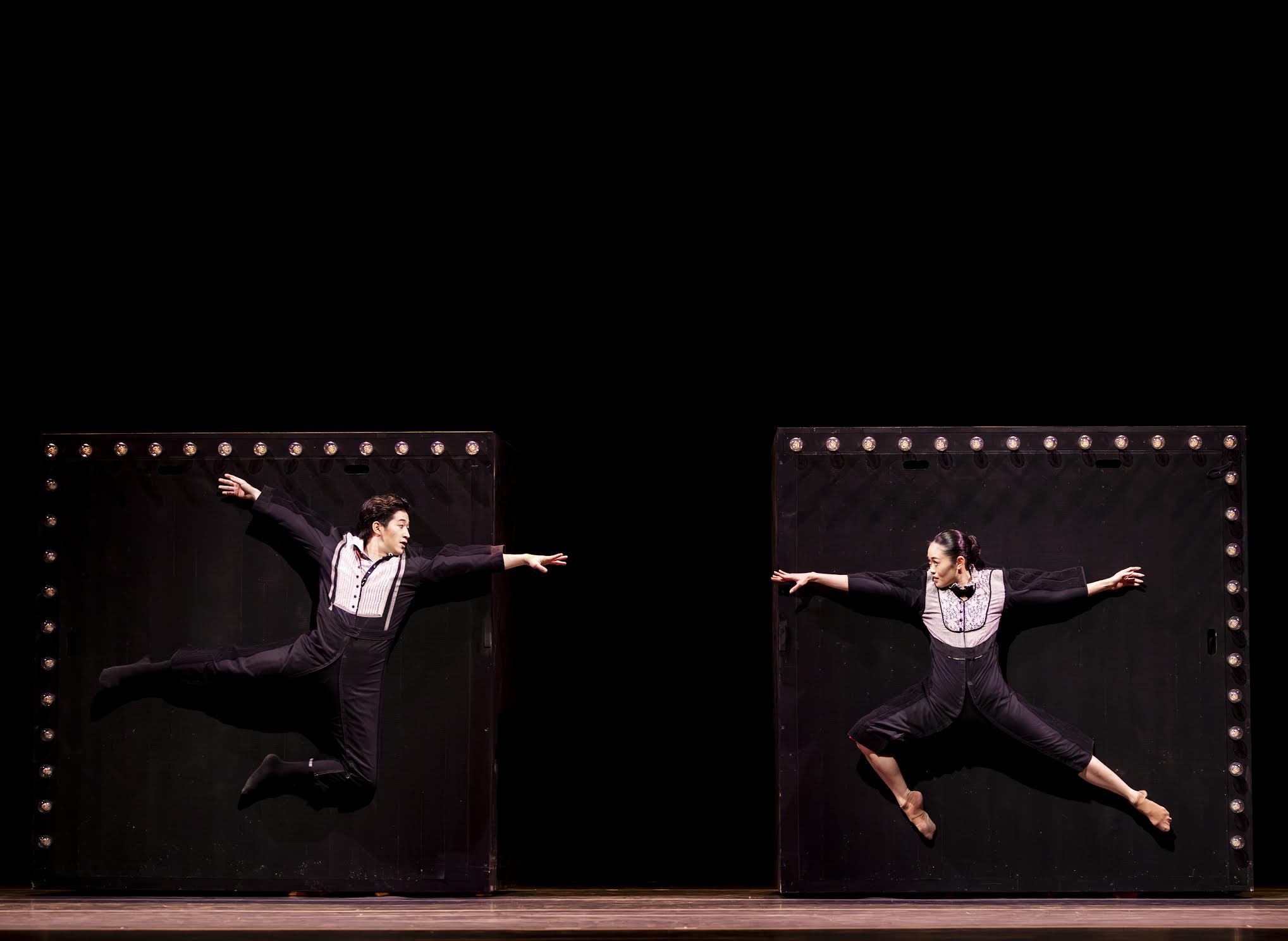 Costume designer Branimira Ivanova dresses the dancers as if they’re headed to Zooey Deschanel’s 2005 New Year’s Eve party—lacy minidresses, skinny slacks, suspenders—then sends them onstage to tackle Cerrudo’s choreography, which has them leaping into the orchestra pit, somersaulting wildly, and getting Velcroed to giant, spinning black boxes.