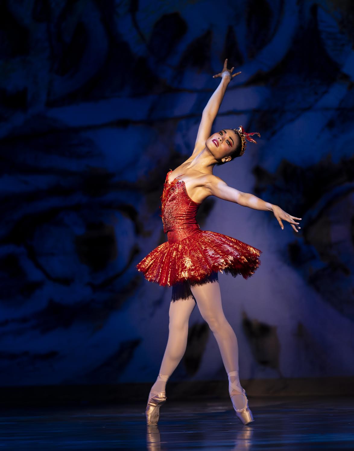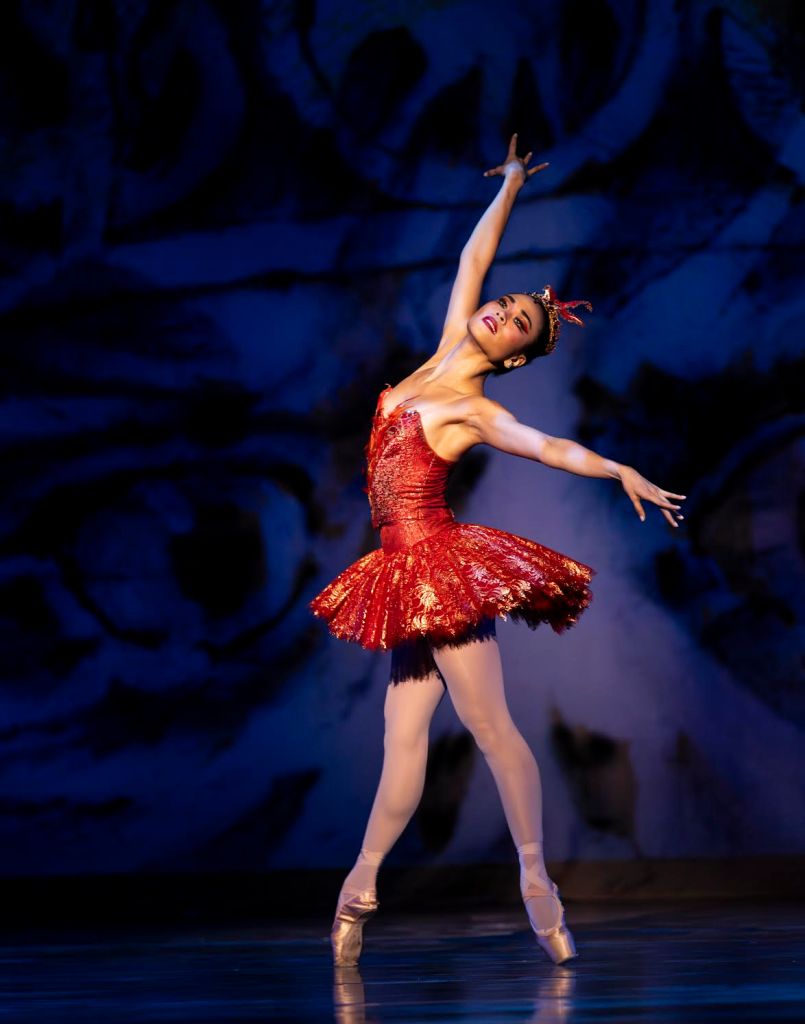 Generosa fully transforms into a blaze of a bird, splaying her hands like wings, darting around the stage, primping and preening, leaping wildly, and eyeing Prince Ivan (played on opening night by principal Jonathan Batista) with the kind of crazed avian side-eye you get when you spook a seagull.